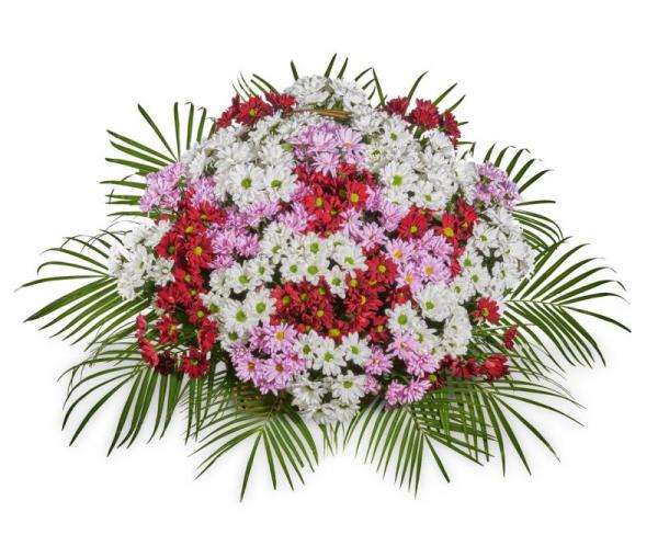 Květinový koš je aranžmá v proutěném košíku tvořené z jemných květů chryzantém s možností barevných variant.