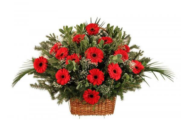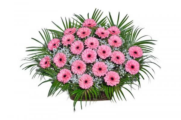 Barvu květů gerber v květinovém koši si můžete zvolit sami.