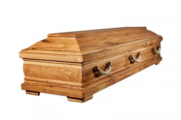 Kvalitní celodřevěná rakev v exkluzivním designu dřeva divokého dubu. Design pro milovníky přírody umocňují madla vyrobená ze silného lana, která jsou usazena v lesklém mosazném pouzdře. Vhodná ke kremaci, do hrobů i hrobek.
