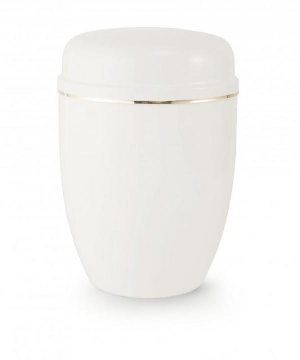 Kovová urna bílá, zlaté lemování, vyšší lesk. Výška: 27 cm Průměr: 18,5 cm
